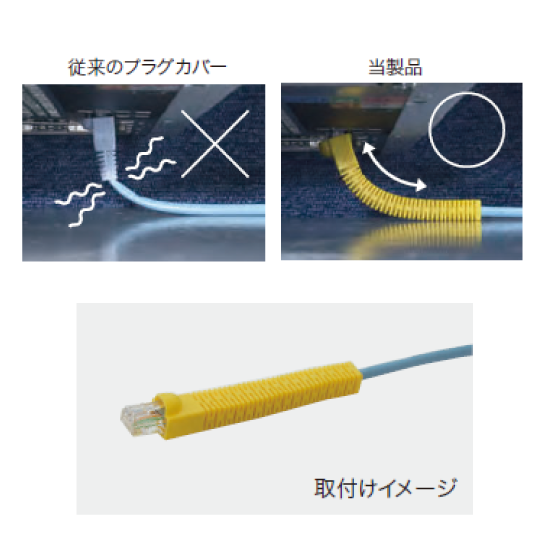 LANケーブルを急な曲げから守る狭いところでのケーブルの保護に