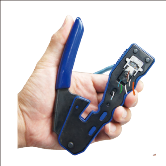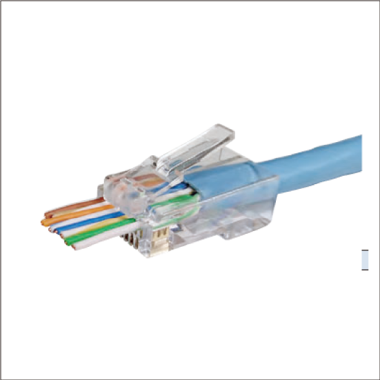 ● 貫貫通タイプのモジュラープラグ成端で作業が早い!