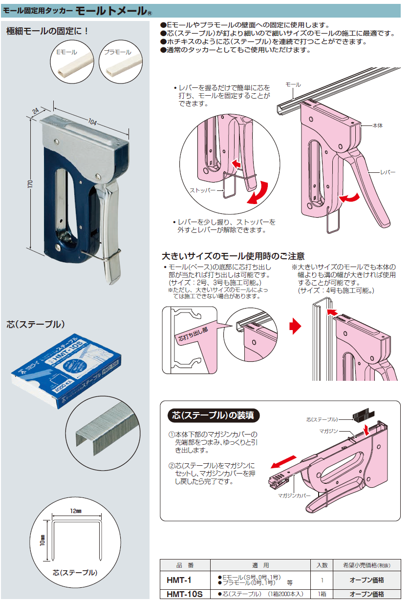 HMT-10S モール固定用タッカー モールトメール 芯(1箱2000本入)