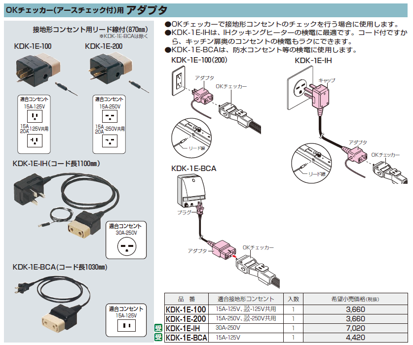 KDK-1E-BCA OKチェッカー(アースチェック付)用アダプタ