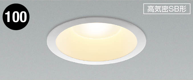 詳細仕様 φ100。白熱球100W相当。アルミダイカスト(ファインホワイト)。プラスチック(乳白色)。LED一体型。SB形。防雨・防湿型。