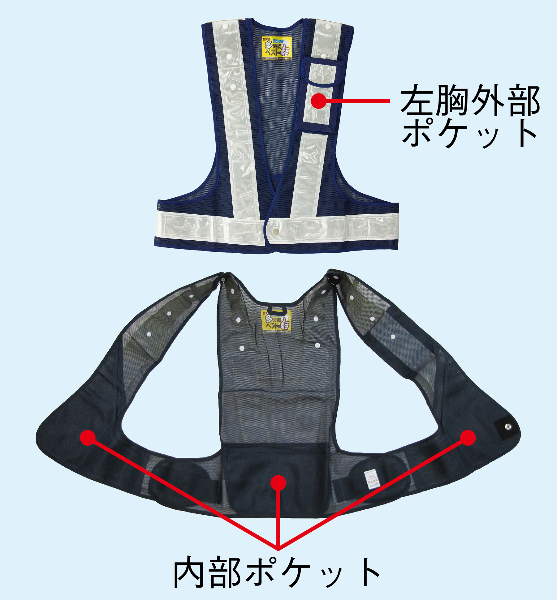 - 身に着ける安全用品,反射ベスト(多機能セーフティ)