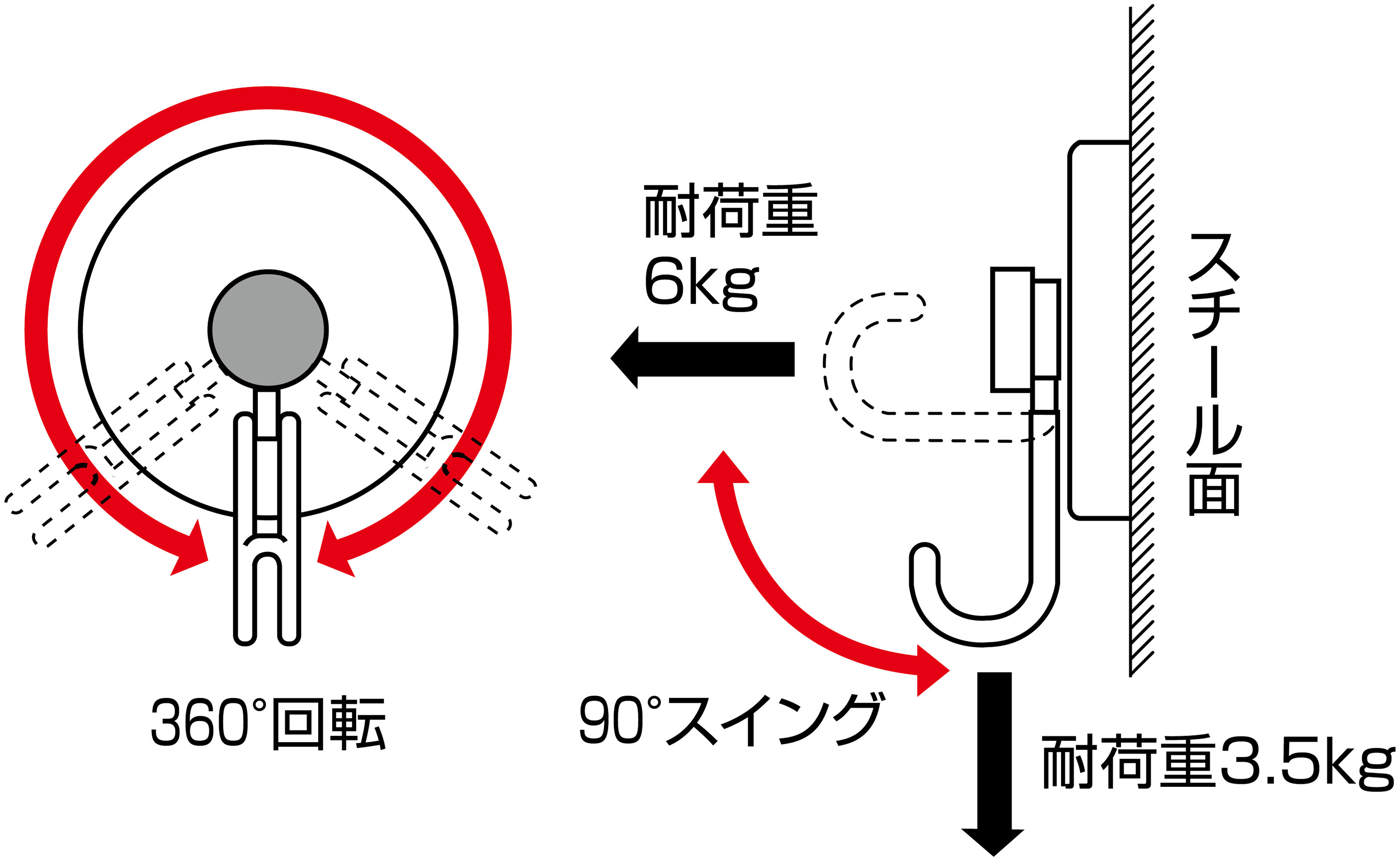 メーカー:日本緑十字社 フックがけ3.5kgまでの重さもOKの強力マグネット