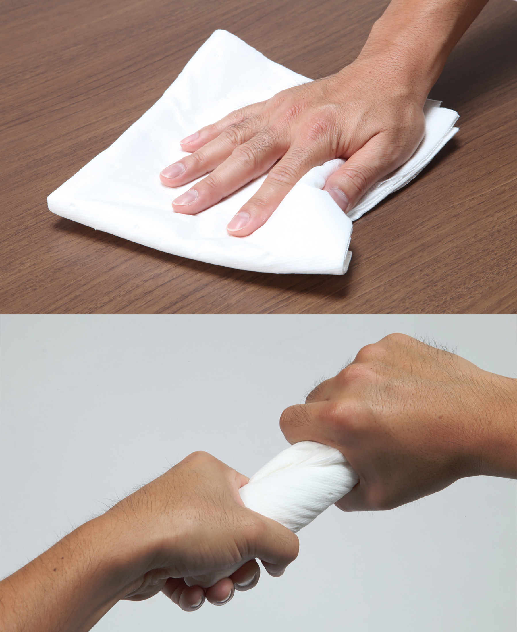 内面生地に吸収量の高い不織布を採用。多量の液体を拭き取るタフなウエス。
