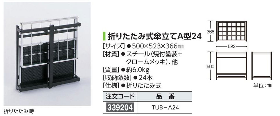 折りたたみ式傘立てA4型24 339204 TUB-A24