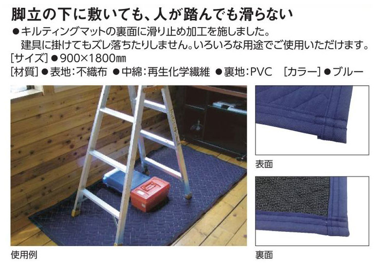 メーカー:日本緑十字社 サイズ 900×1800mm 材質 表地:不織布 中綿:再生化学繊維 裏地:PVC カラー ブルー