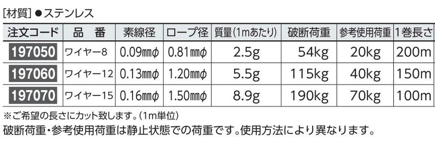 - ステンレスワイヤーロープ 197050 ワイヤー8