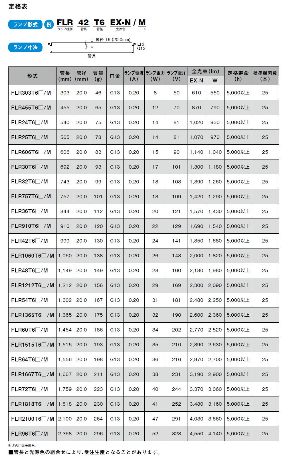 メーカー:プリンス電機 二本ピン仕様のT6スリム蛍光ランプ