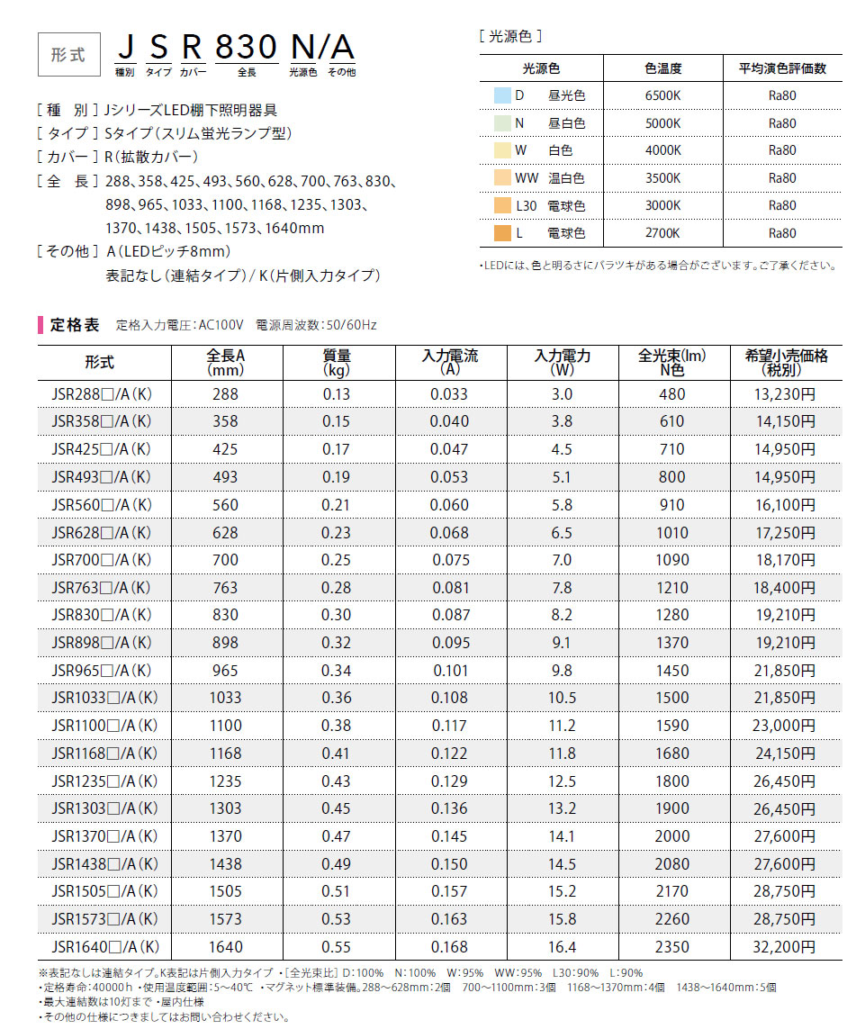 商品コード: JSR1640D/A ~ JSR1640WW/A