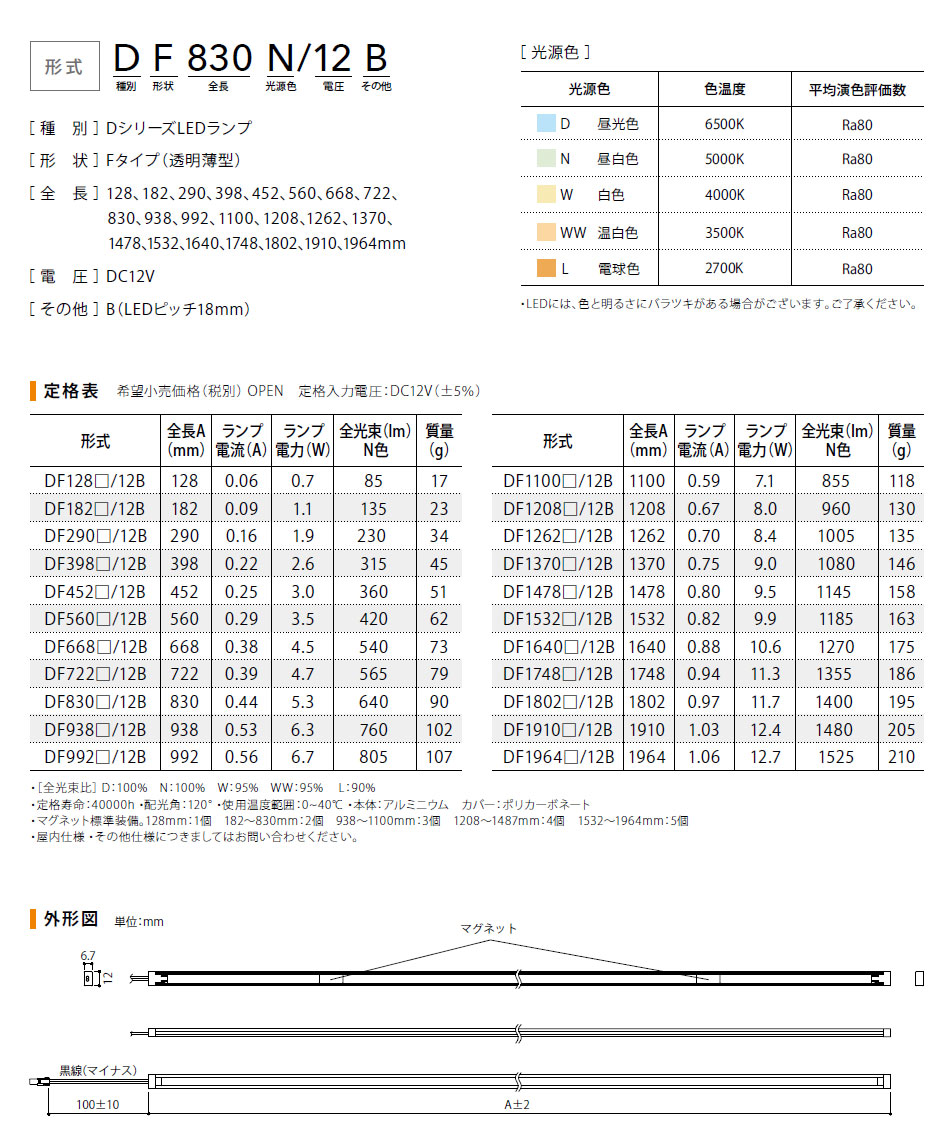 商品コード: DF1370D/12B ~ DF1370WW/12B