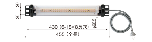 直管形LEDランプを、ポリカーボネイト樹脂製の筒内に挿入。雨水などからランプ本体を保護します。