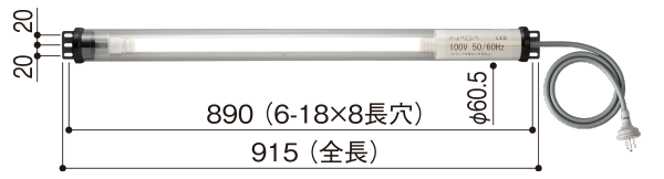 直管形LEDランプ | 100 | 50/60 | 1.1 | 9 | 0.09 | 1050 | 116.7 | 5000 | 80 | |