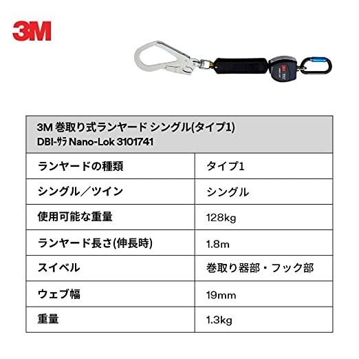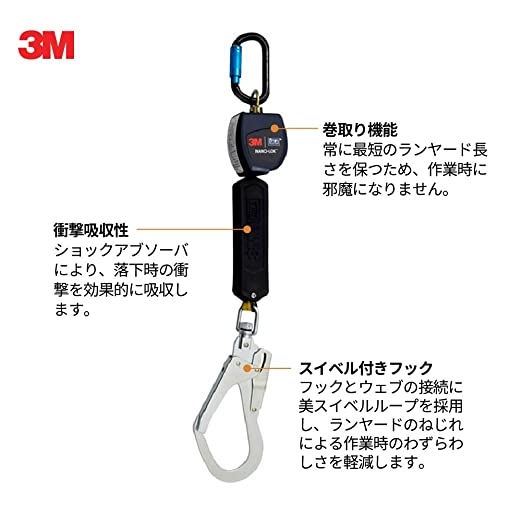 3M DBI -サラNano-Lok巻取り式ランヤード タイプ1 シングル