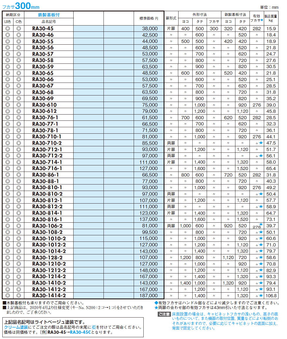 RA30-46 RA形制御盤キャビネット(水切構造、防塵、防水パッキン付)鉄製基盤付
