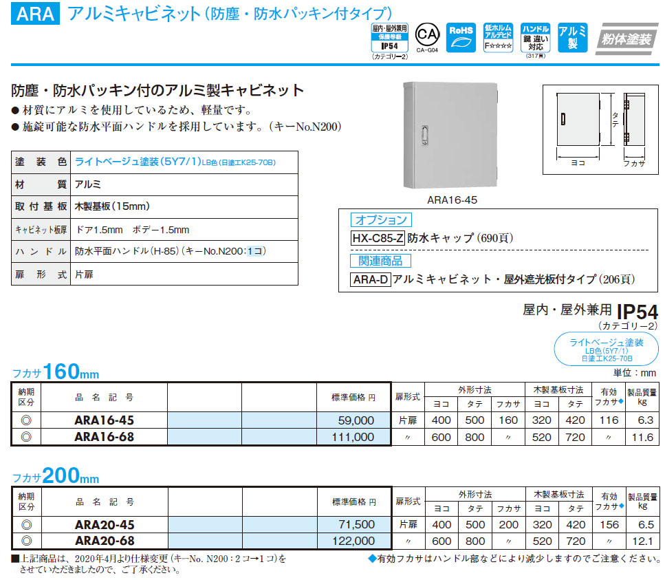 ARA16-68 ARA アルミキャビネット(防塵、防水パッキン付)木製基盤付
