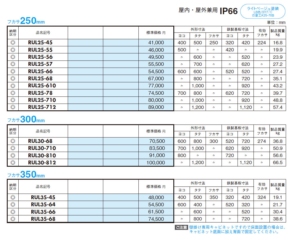 RUL35-45 RUL形キャビネット 鉄製基盤付