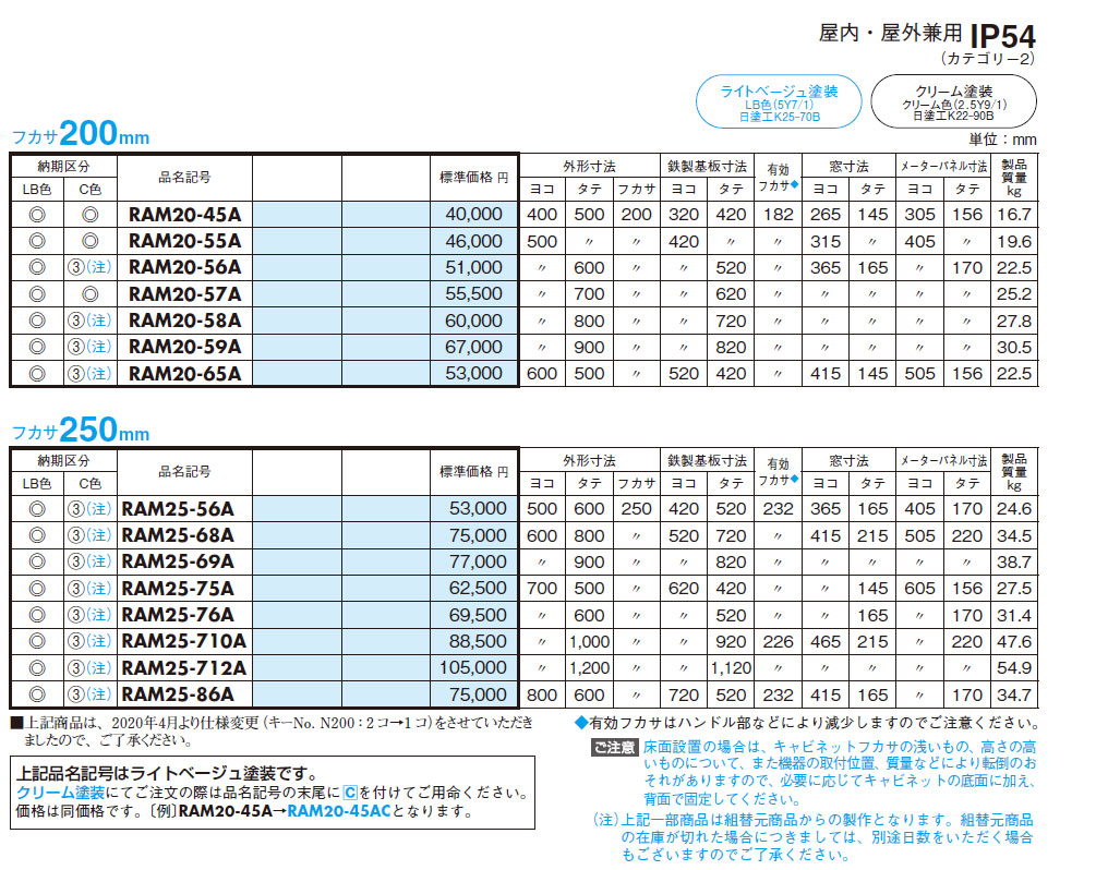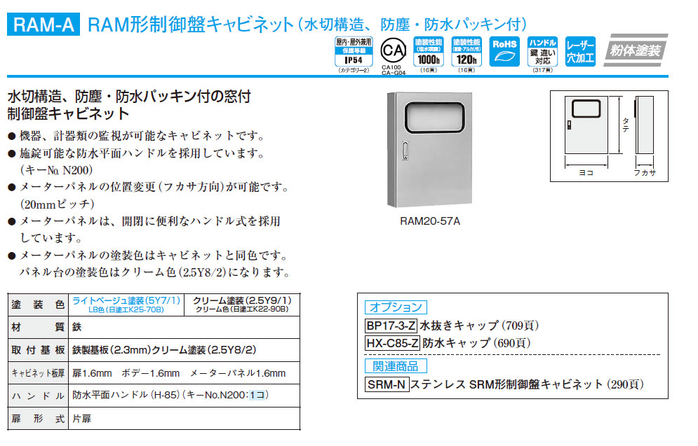 RAM20-59A RAM形制御盤キャビネット(水切構造、防塵、防水パッキン付)鉄製基盤付