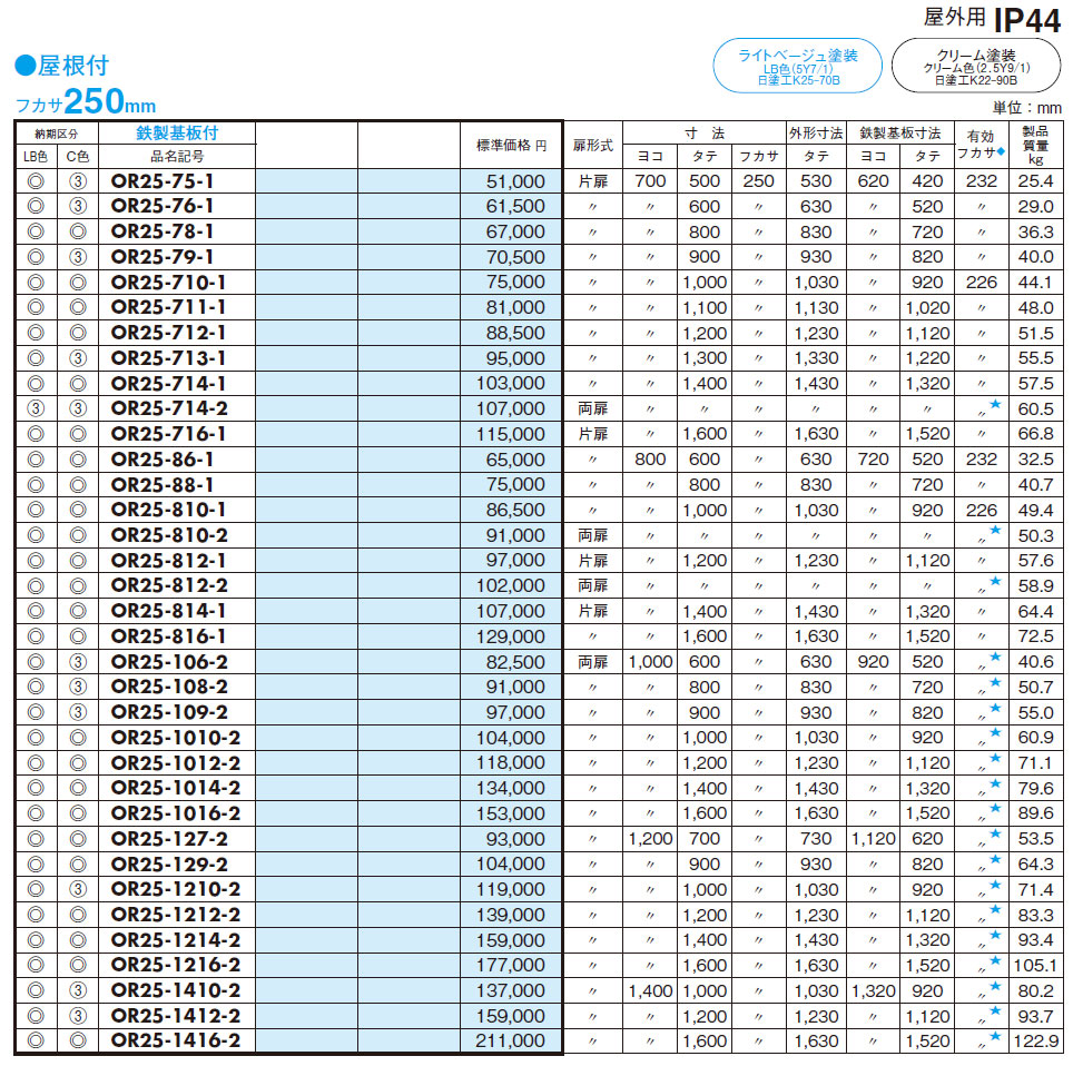 OR25-79-1 屋外用制御盤キャビネット(水切構造、防塵・防水パッキン付)鉄製基盤付