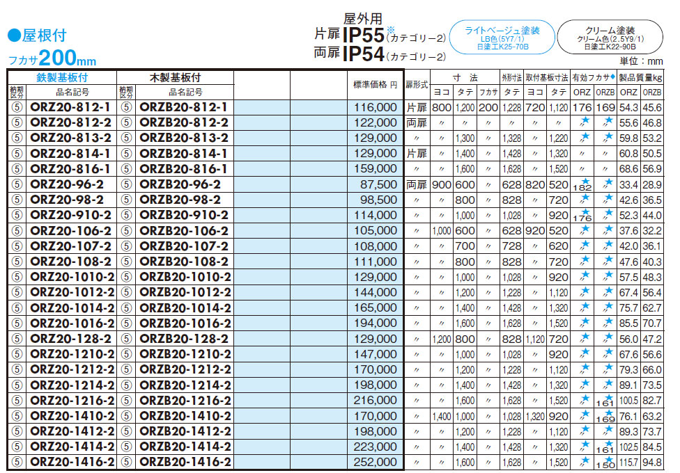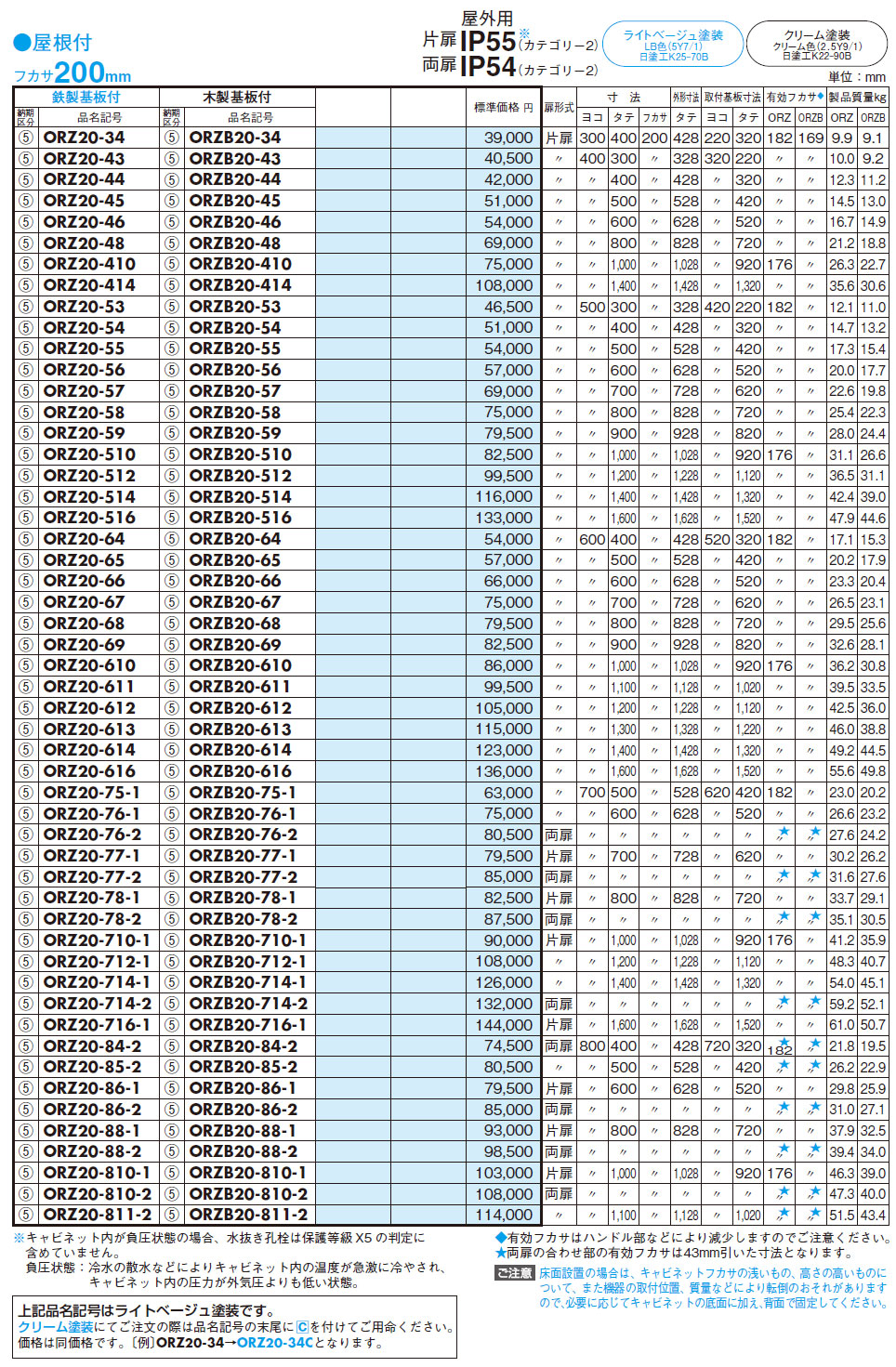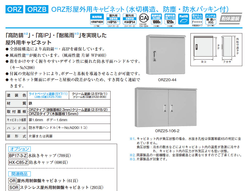 ORZB20-46 ORZ形屋外用キャビネット(水切構造、防塵・防水パッキン付)木製基板付