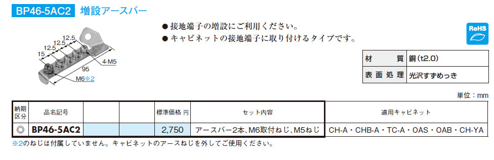 BP46-5AC2 CH形ボックス・オプション 増設アースバー