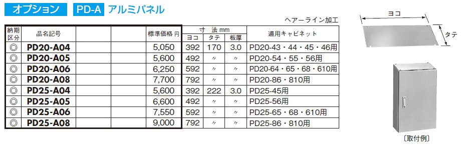 PD20-A08 PD形制御盤キャビネット オプション アルミパネル
