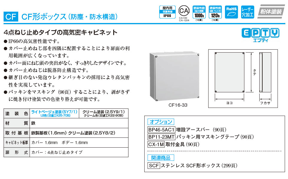CF16-1515 CF形ボックス(防塵・防水構造) 鉄製基板付