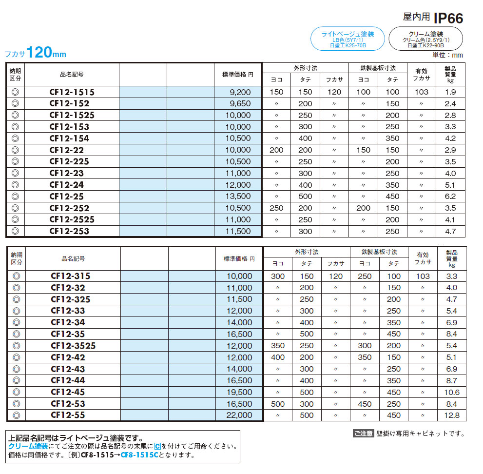 CF12-154 CF形ボックス(防塵・防水構造) 鉄製基板付