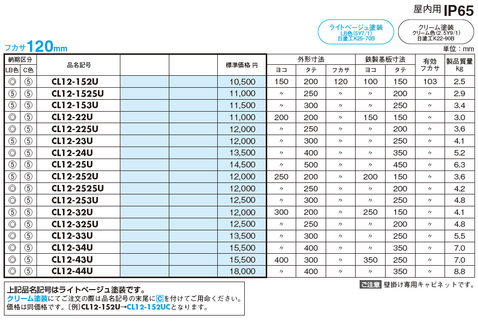 CL12-2525U CL形ボックス(防塵・防水構造)国際規格認証タイプ 鉄製基板付