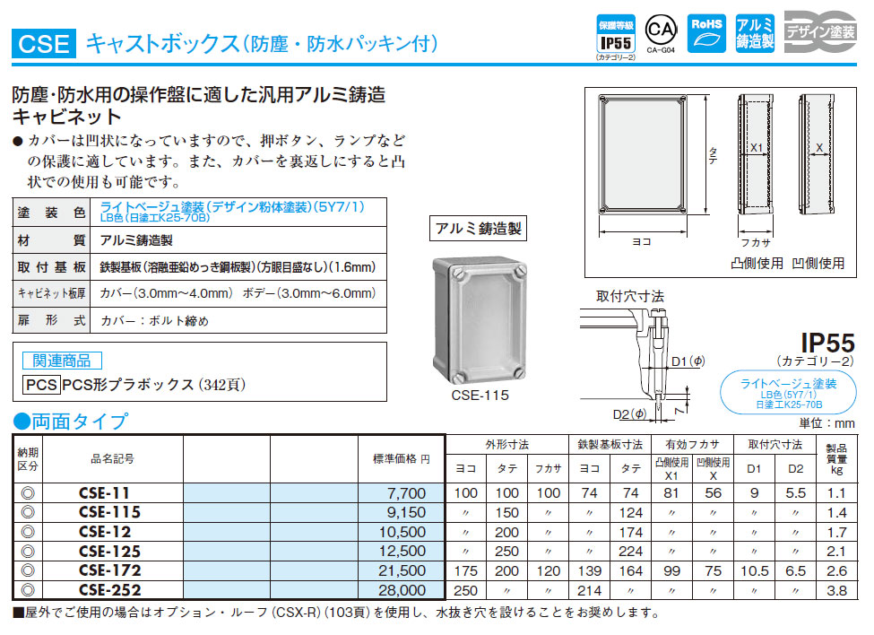 CSE-11 キャストボックス(防塵・防水パッキン付)両面タイプ