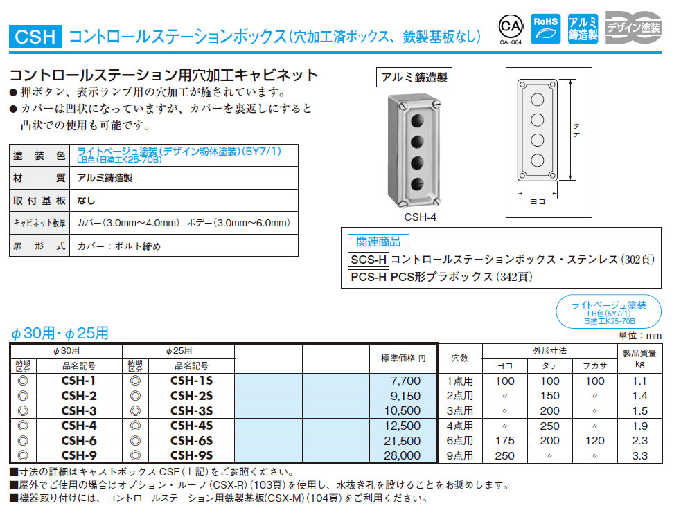 CSH-9 コントロールステーションボックス(穴加工済ボックス、鉄製基板なし)Φ30用