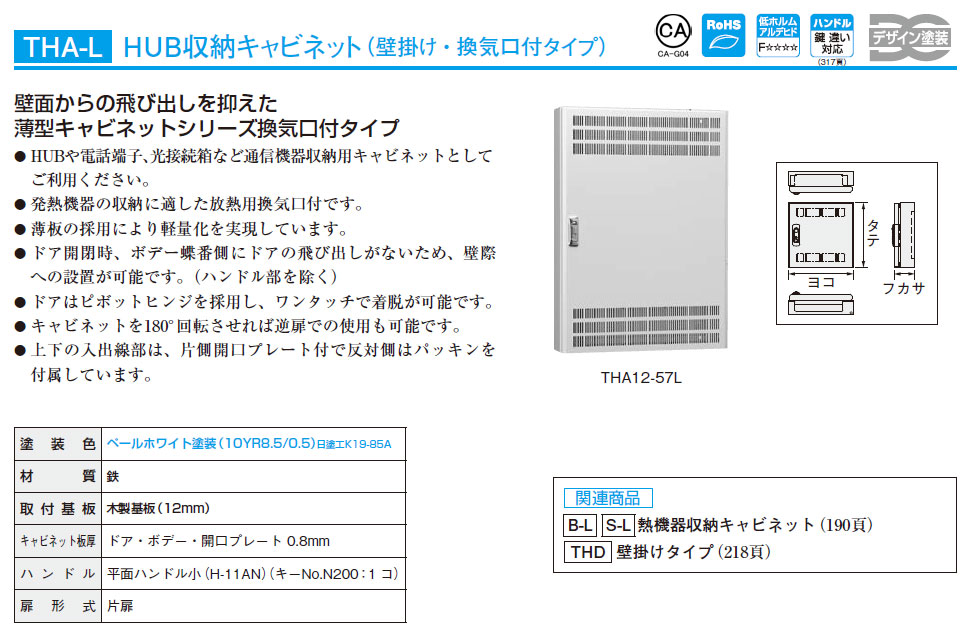 THA12-47L HUB収納キャビネット(壁掛け・換気口付タイプ)木製基板付
