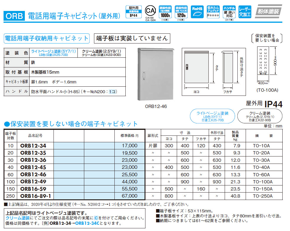 ORB16-59 電話用端子キャビネット(屋外用) 木製基板付