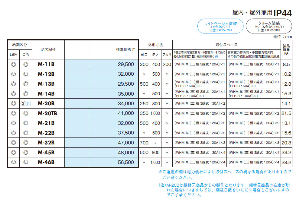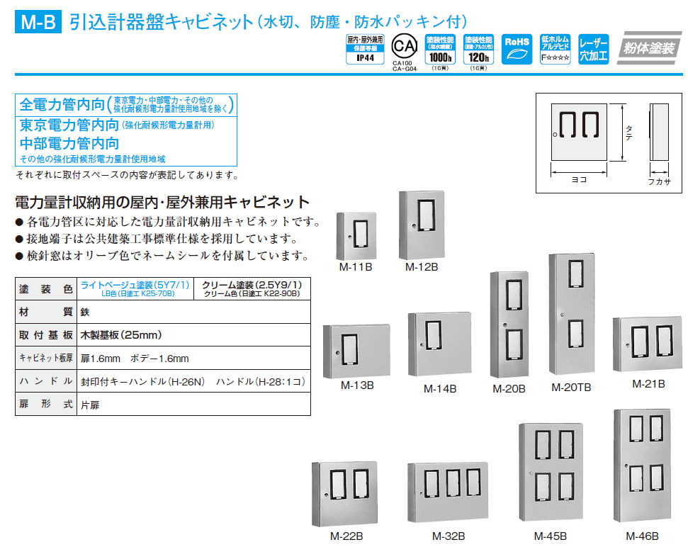 M-46B 引込計器盤キャビネット(水切、防塵、防水パッキン付) 木製基板