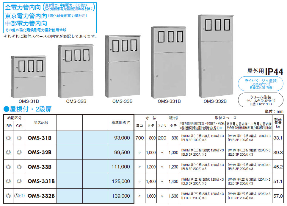 OMS-32B 引込計器盤キャビネット(水切、防塵・防水パッキン付) 木製基板