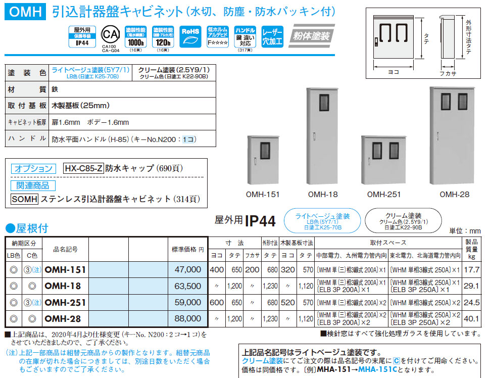 OMH-28 引込計器盤キャビネット(水切、防塵・防水パッキン付) 木製基板