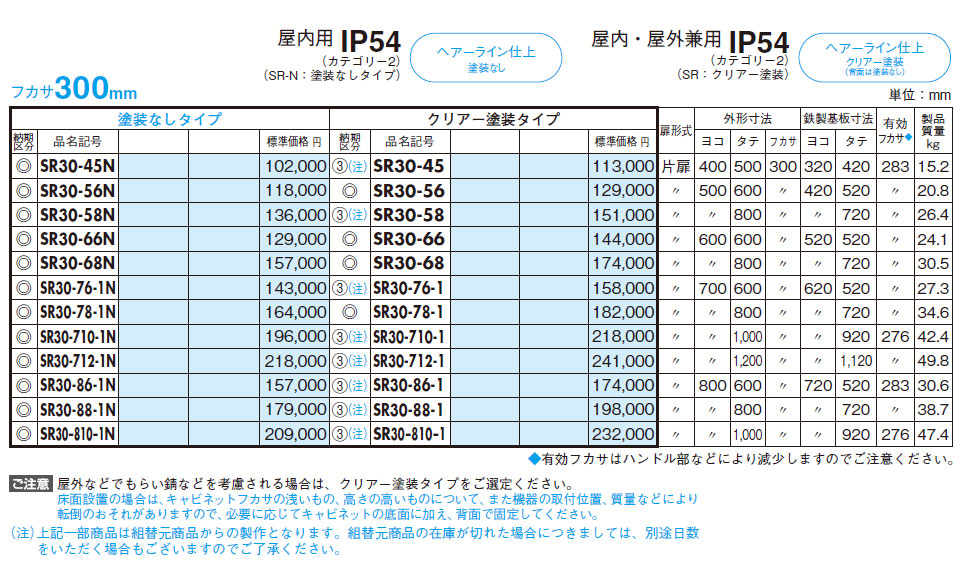 SR30-88-1N ステンレスSR形制御盤キャビネット 鉄製基板