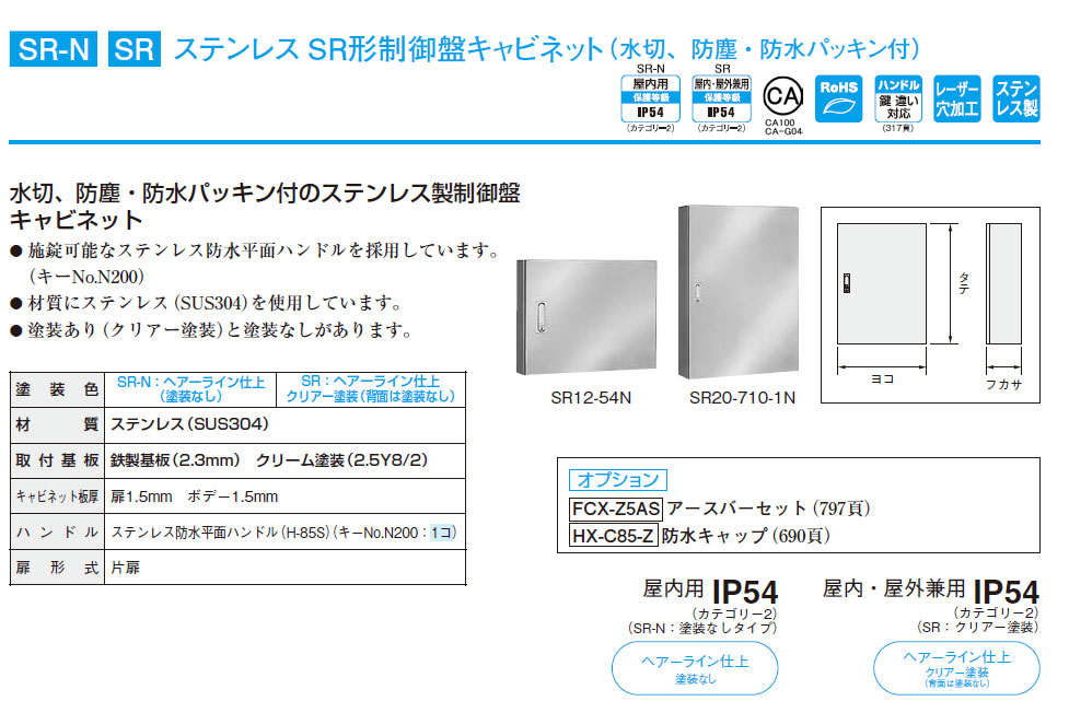 SR12-34N ステンレスSR形制御盤キャビネット 鉄製基板