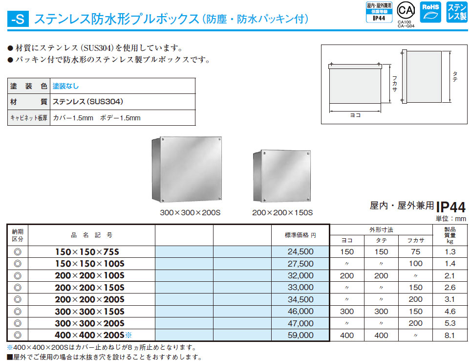 200x200x150S ステンレス防水形プルボックス