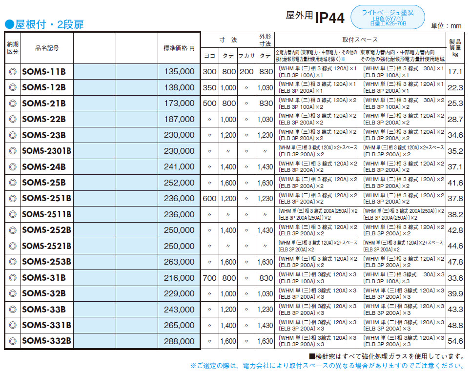 SOMS-23B ステンレス引込計器盤用キャビネット 2段扉  木製基板