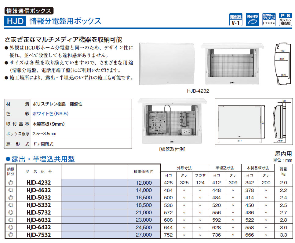 HJD-6432 情報分電盤用ボックス 露出・半埋込共用型