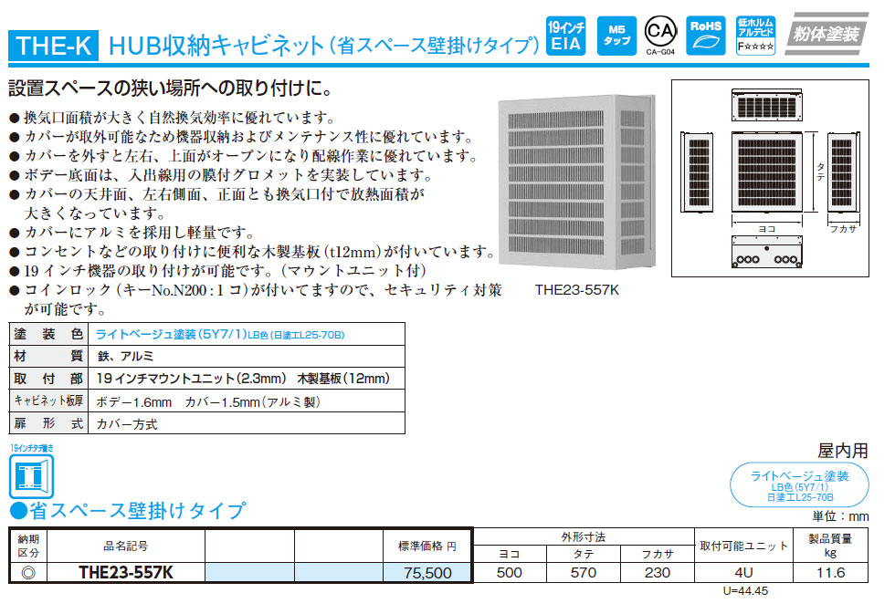 THE23-557K HUB収納キャビネット(省スペース壁掛けタイプ)