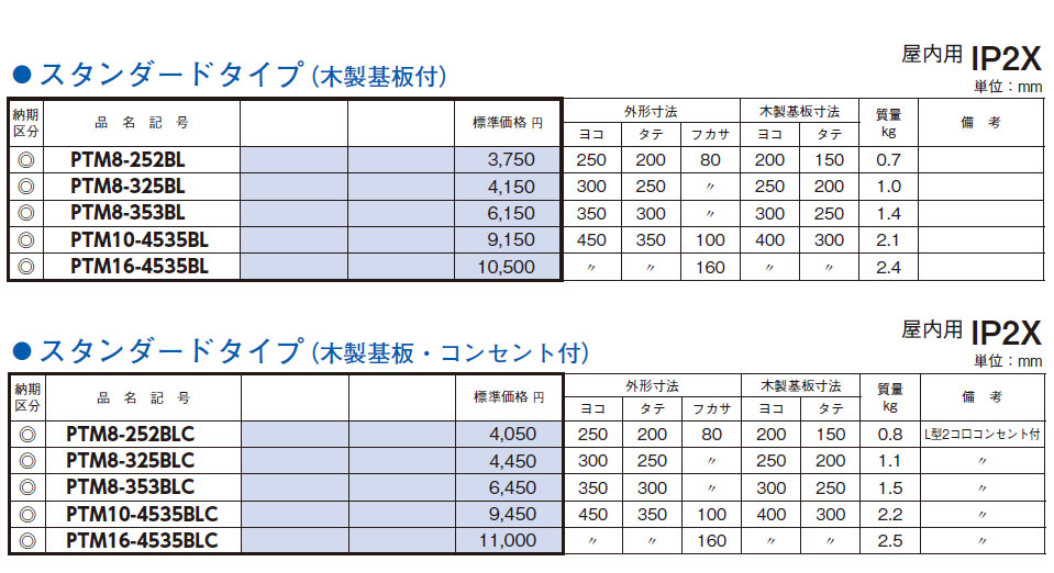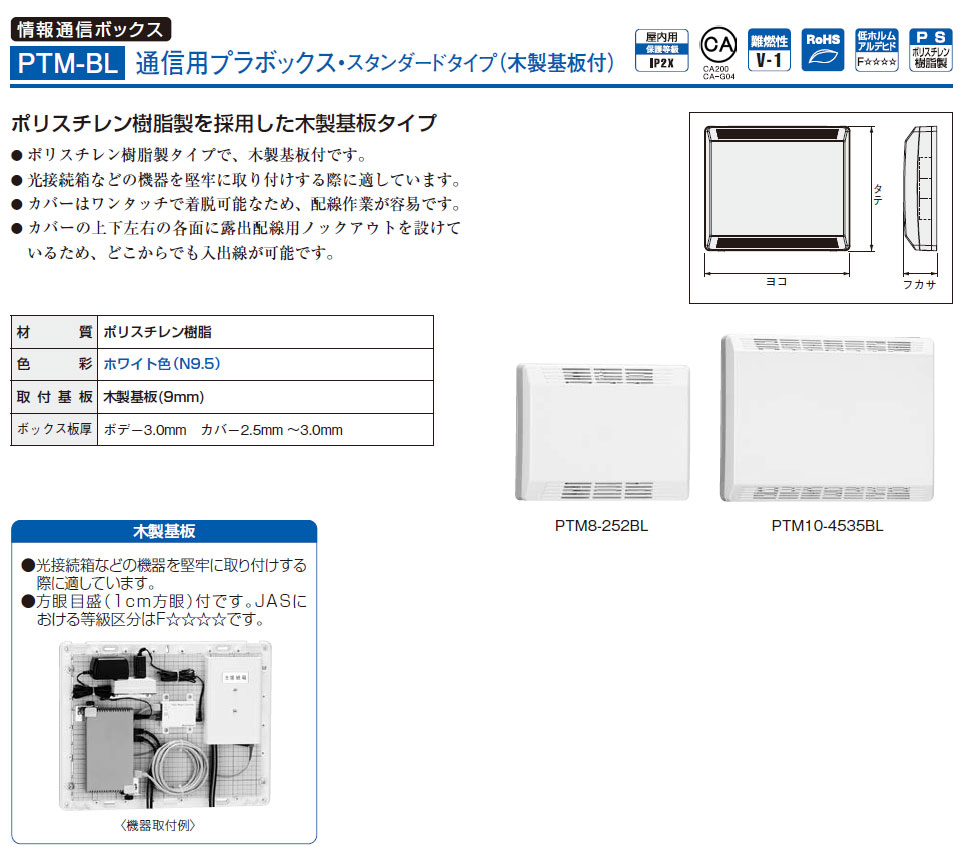 PTM8-353BL 通信用プラボックス スタンダードタイプ(木製基板付)
