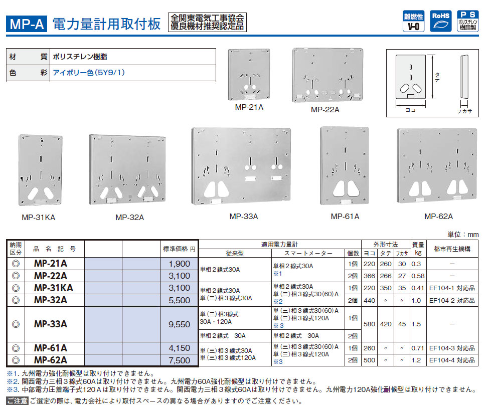 MP-61A 電力量計用取付板