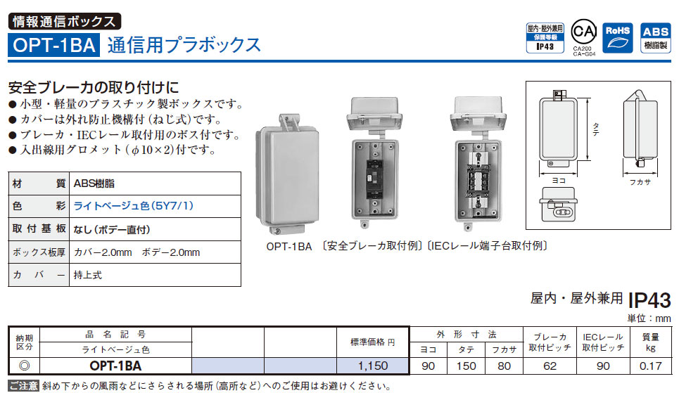 OPT-1BA 通信用プラボックス