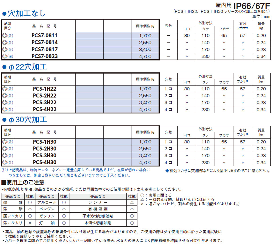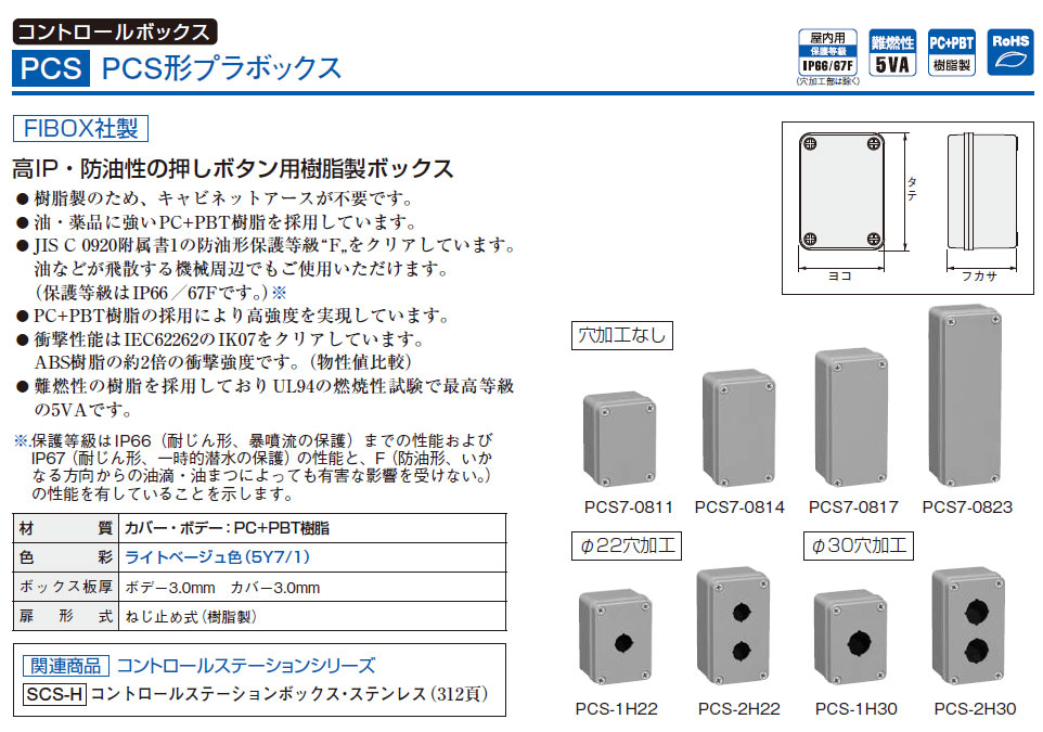 PCS7-0817 PCS形プラボックス 穴加工なし