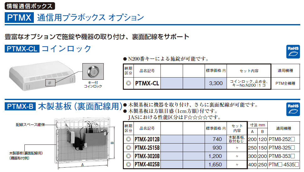 PTMX-2012B 通信用プラボックス・オプション 木製基板(裏面配線用)