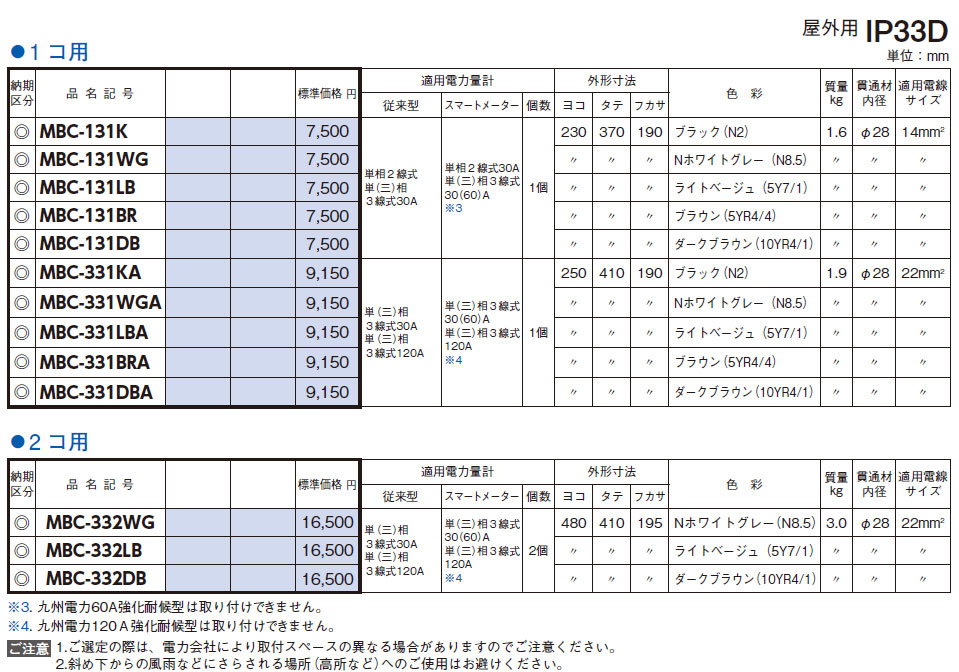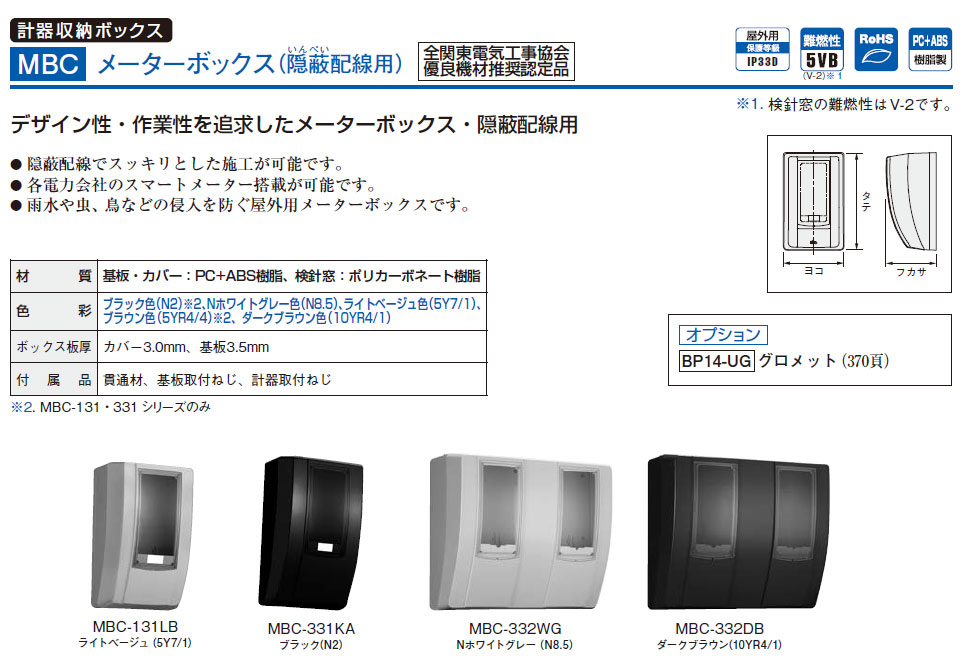 MBC-331KA メーターボックス(隠蔽配線用)1コ用 ブラック