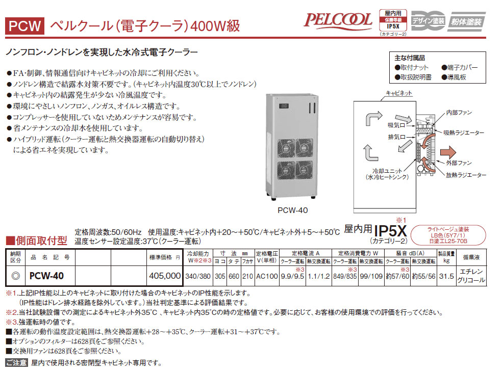 PCW-40 ペルクール(電子クーラ)400W級 側面取付型