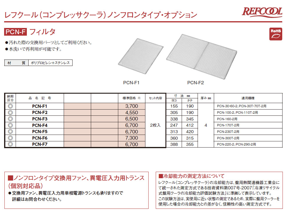 PCN-F2 レフクール(ノンフロンタイプ)・オプション フィルタ