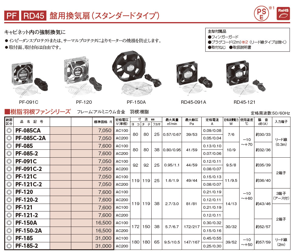 PF-185-2 PF 盤用換気扇(スタンダードタイプ) 樹脂羽根ファン